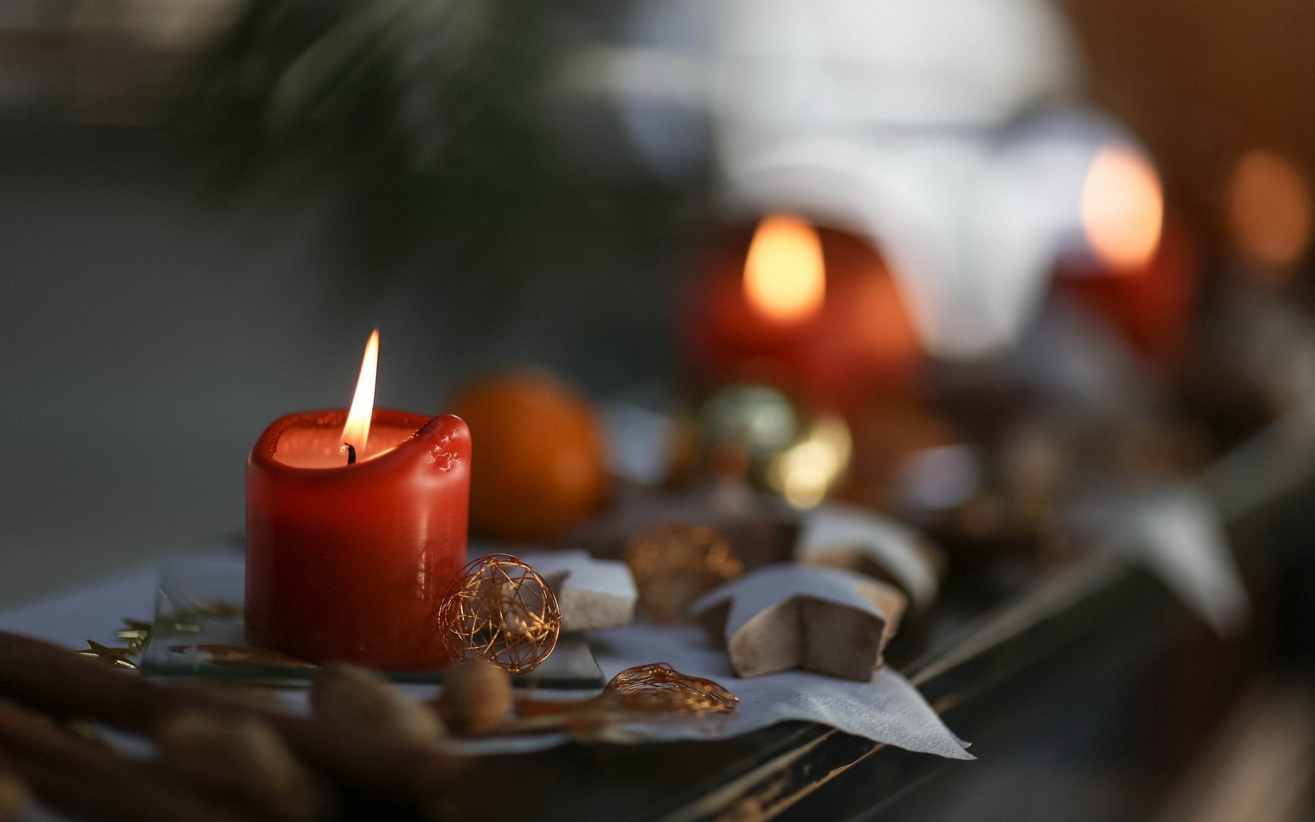 Czerwone kulki na nitce w Nowy Rok