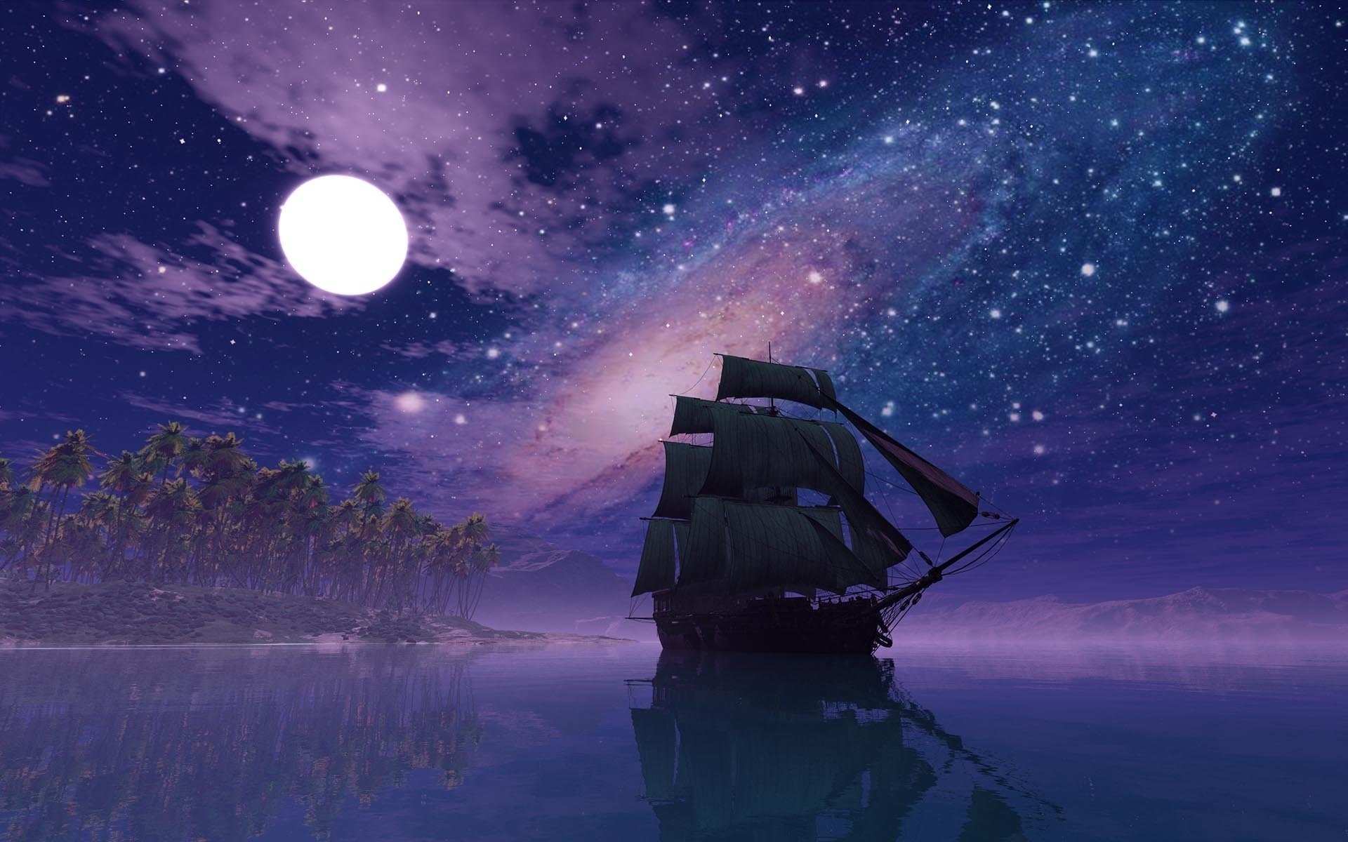 Żaglówka na rozgwieżdżonym niebie