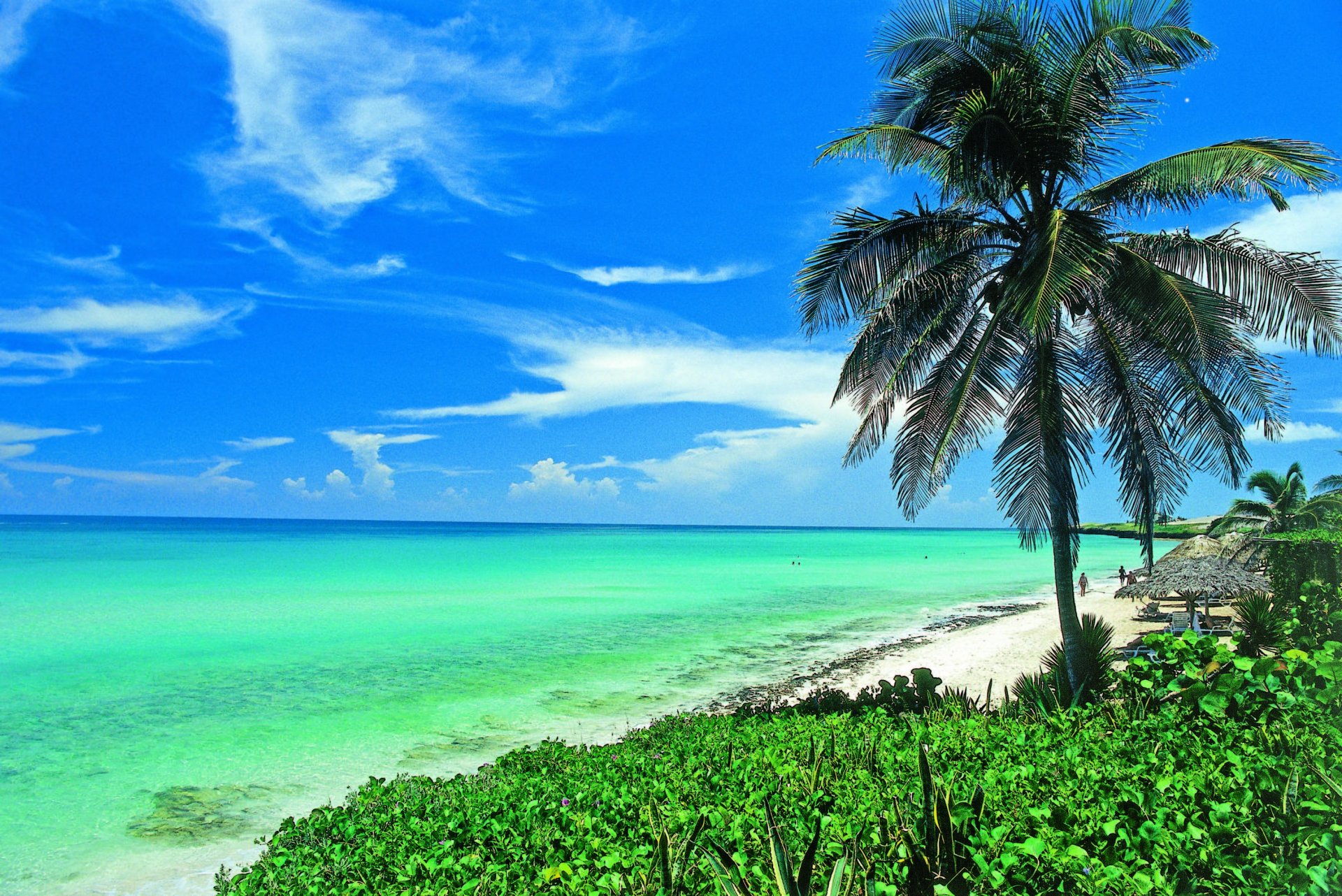 Lazurowe brzegi palmy chmury piaszczyste brzegi