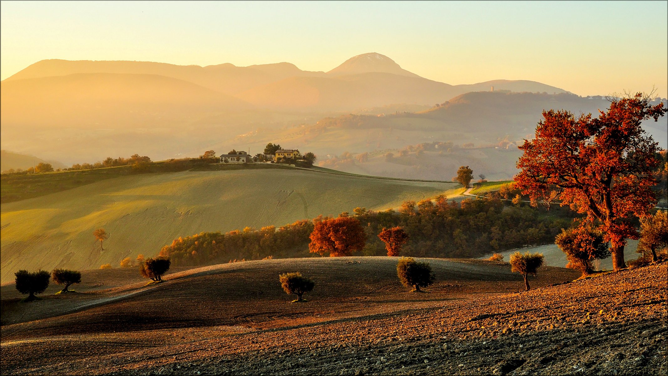 Zielone łąki i samotnie stojące rozłożyste drzewo
