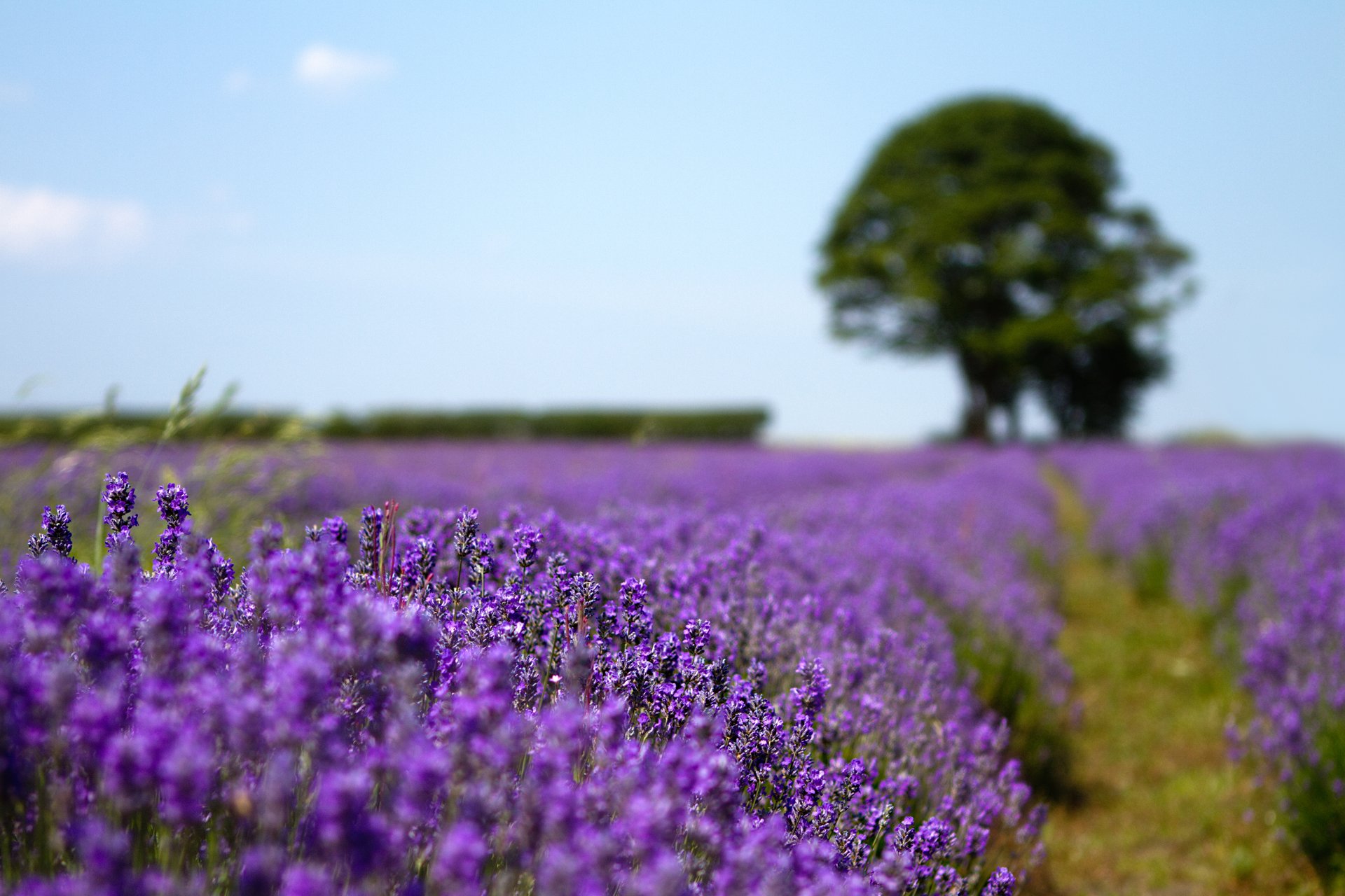 Piękny widok na pole z domami. Niebo z bujnymi chmurami
