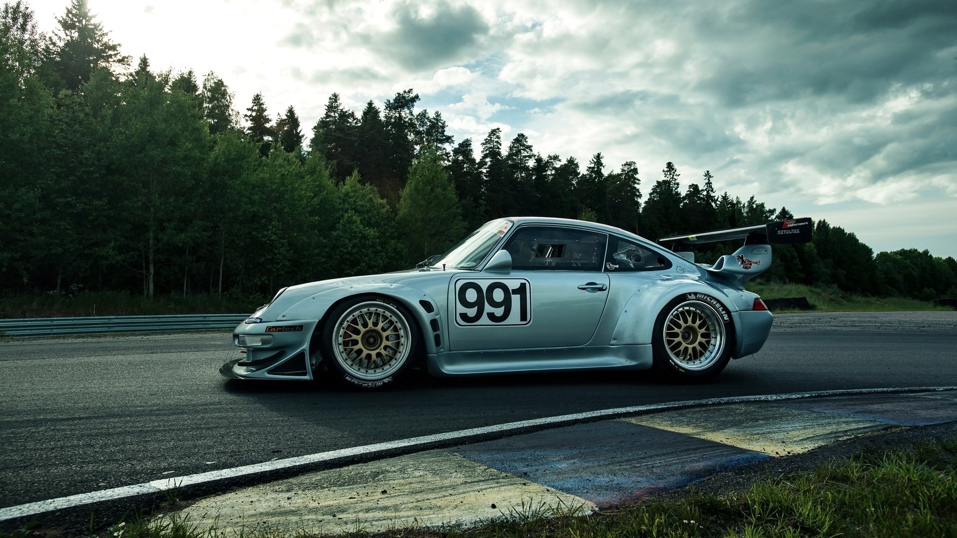 Porsche w czerni i bieli na odblaskowej powierzchni