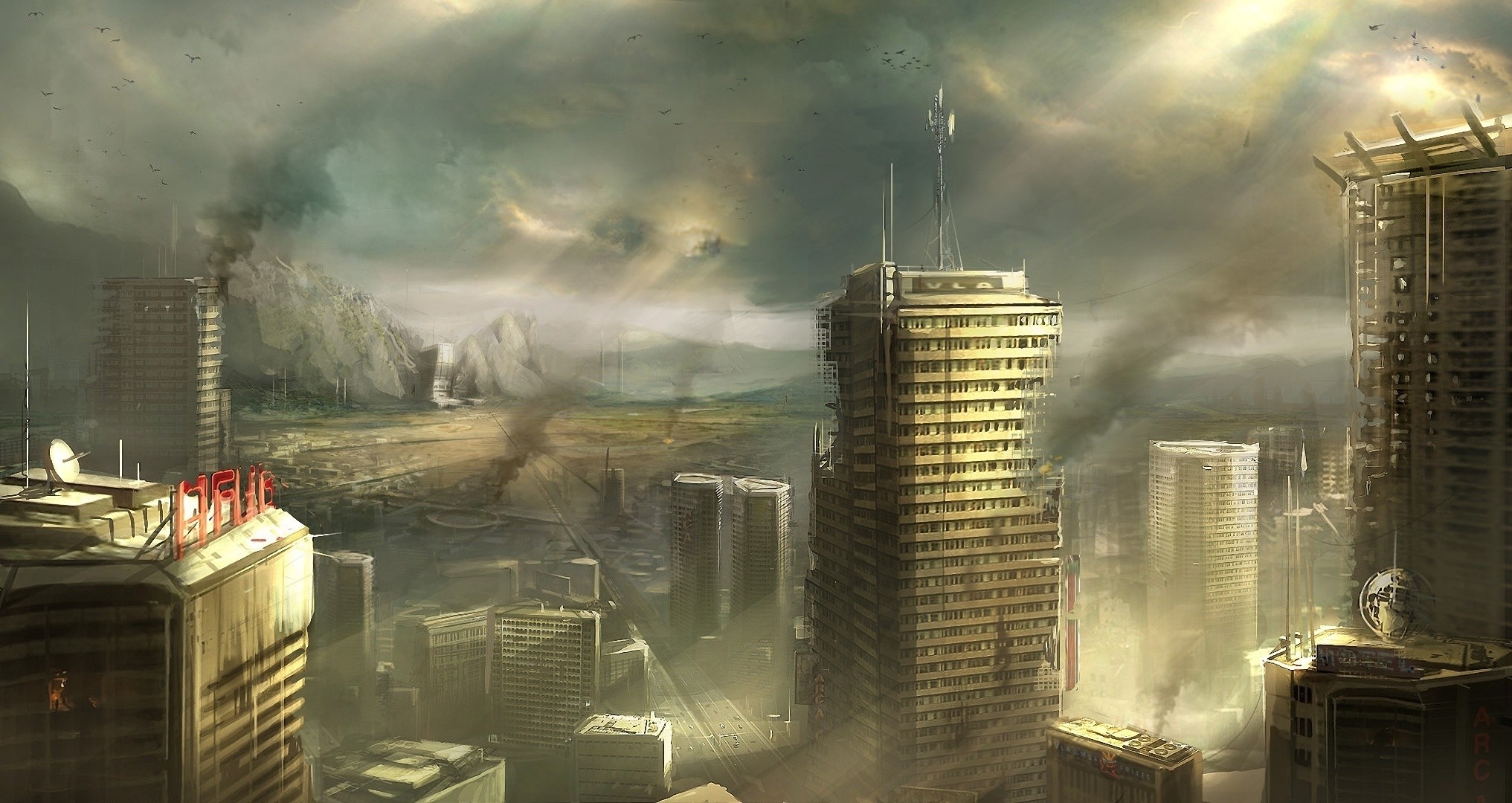 Opuszczone miasto. Maszyna na tle postapokalipsy