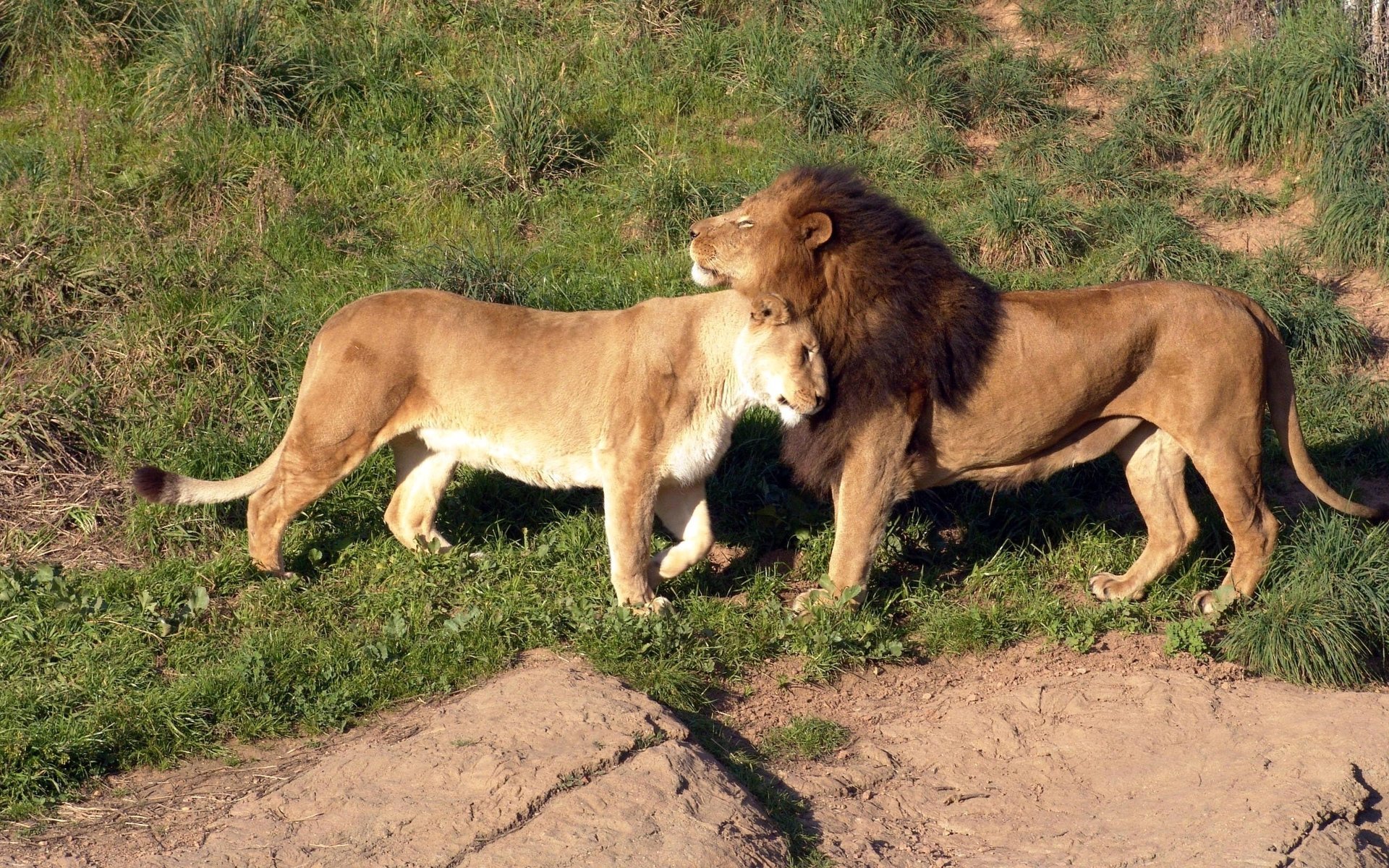 Lew i lwica razem na sawannie