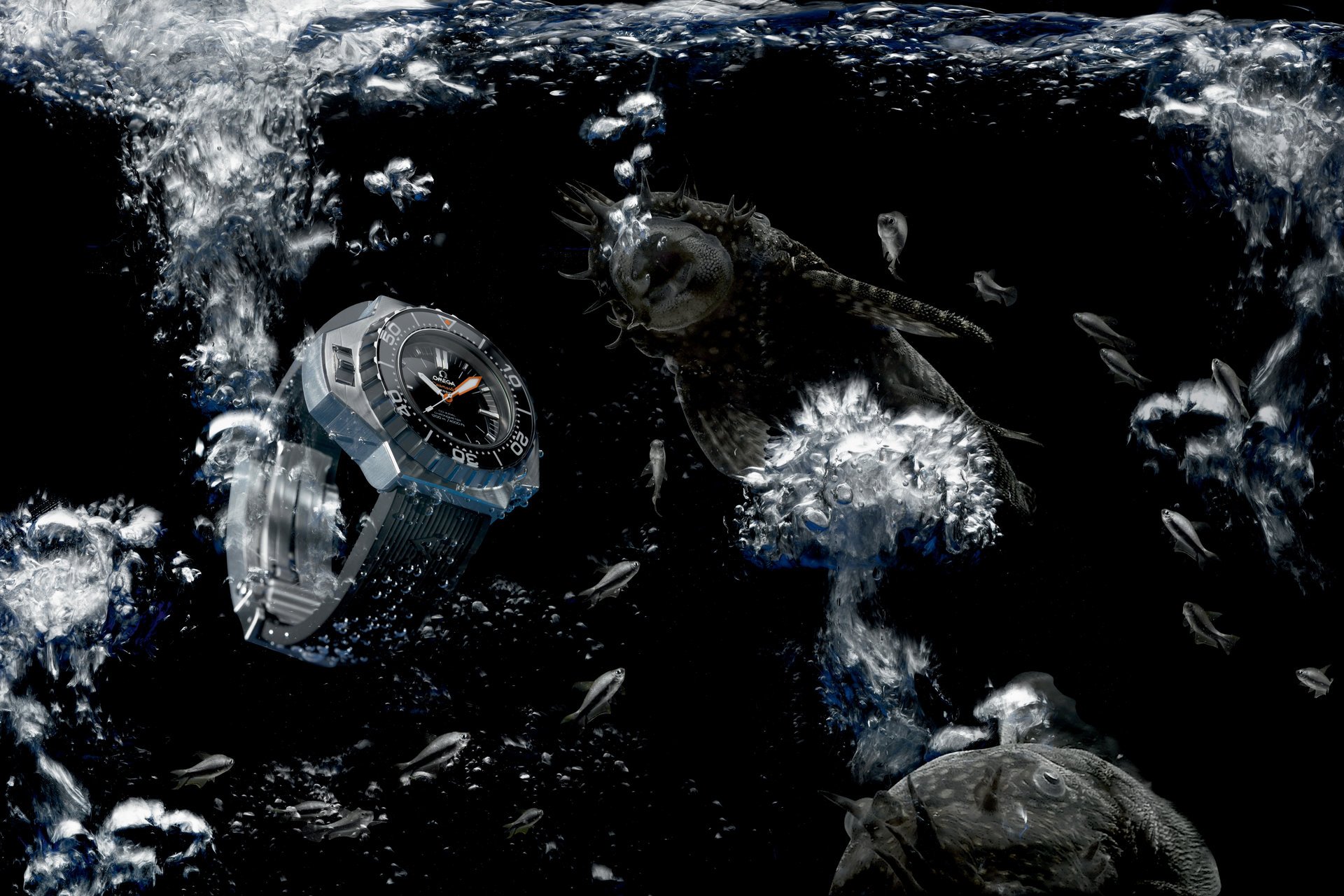 Brutalny zegar Omega w wodzie spektakularne zdjęcie