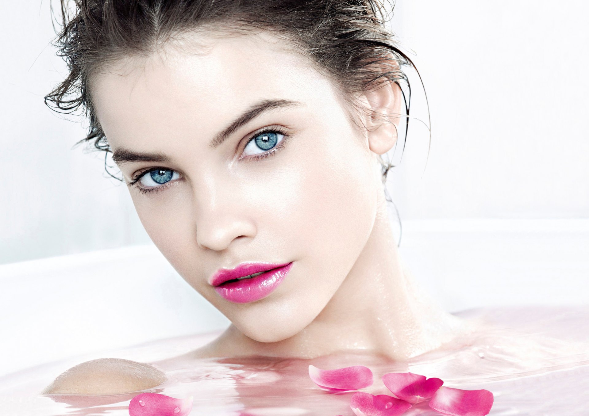 Barbara Palvin w łazience z różami