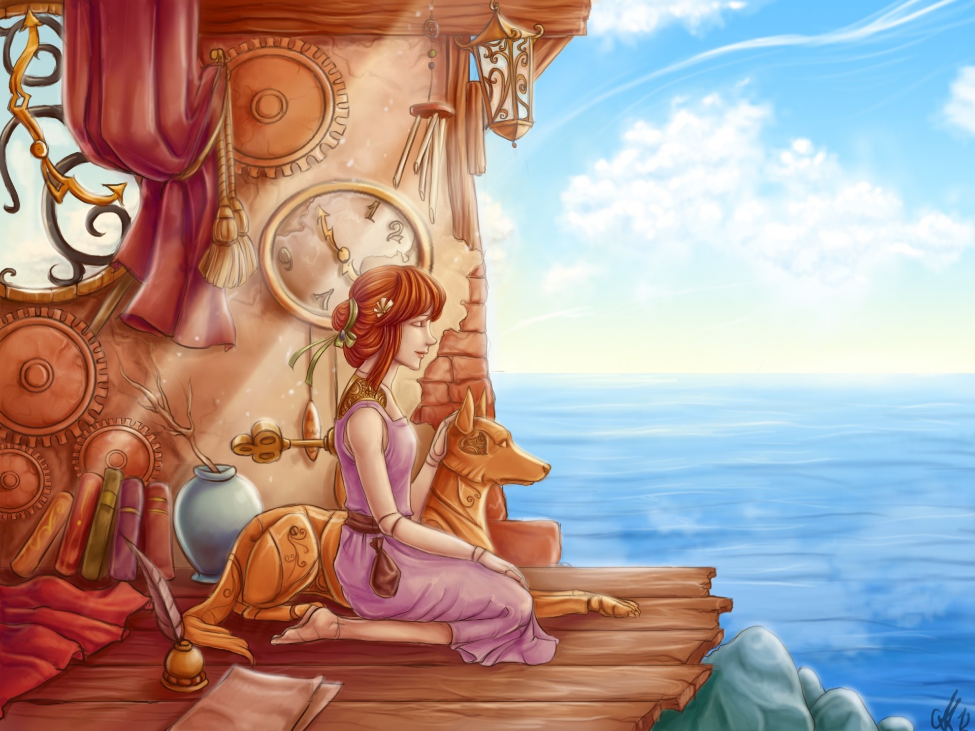 Fantastyczny świat z wieloramienną półnagą dziewczyną