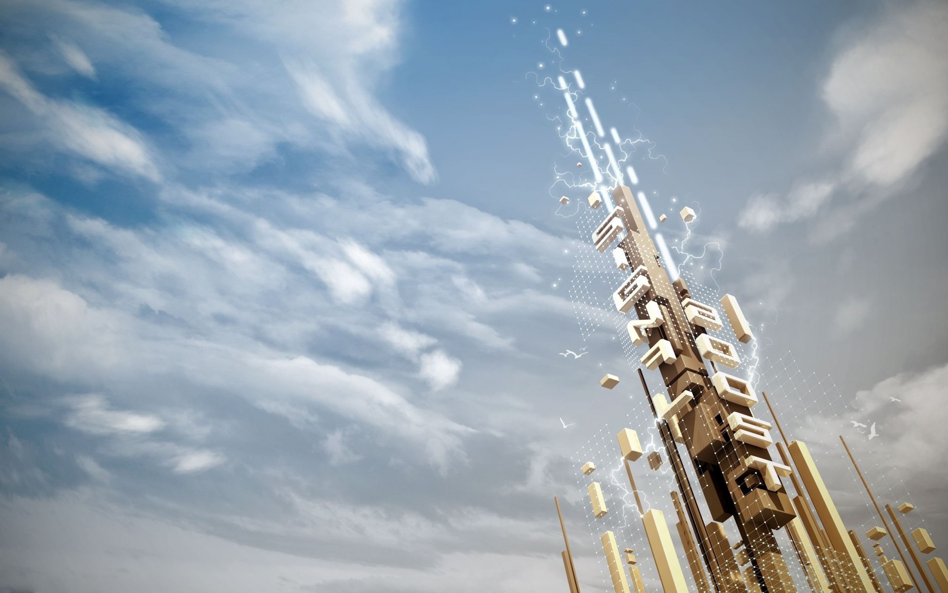 Na tym błękitnym niebie widzimy szary myśliwiec bojowy. Świetnie wygląda i na pewno zasługuje na tło pulpitu