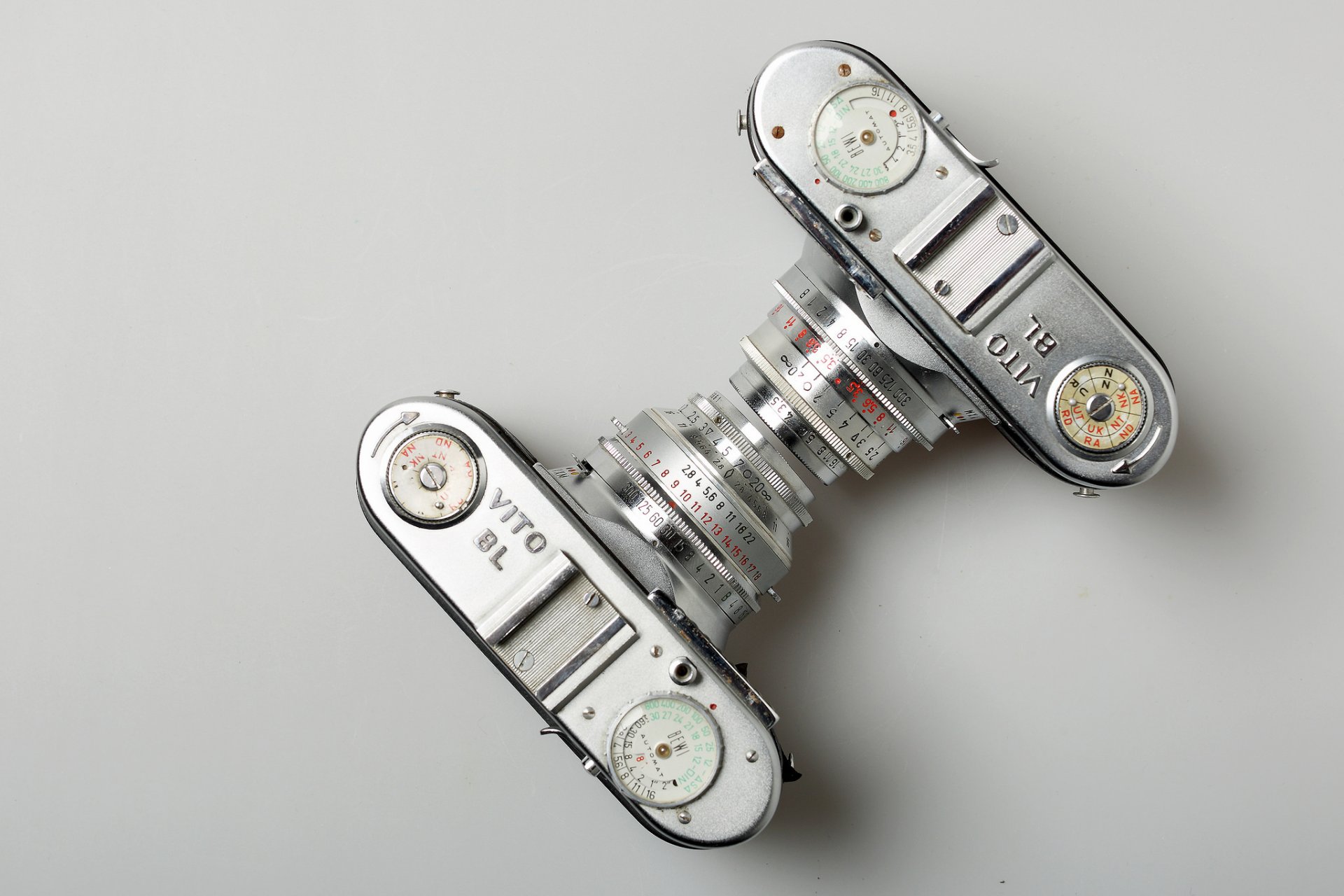 Stare czarno-białe zdjęcie samochodu Wołga na nabrzeżu