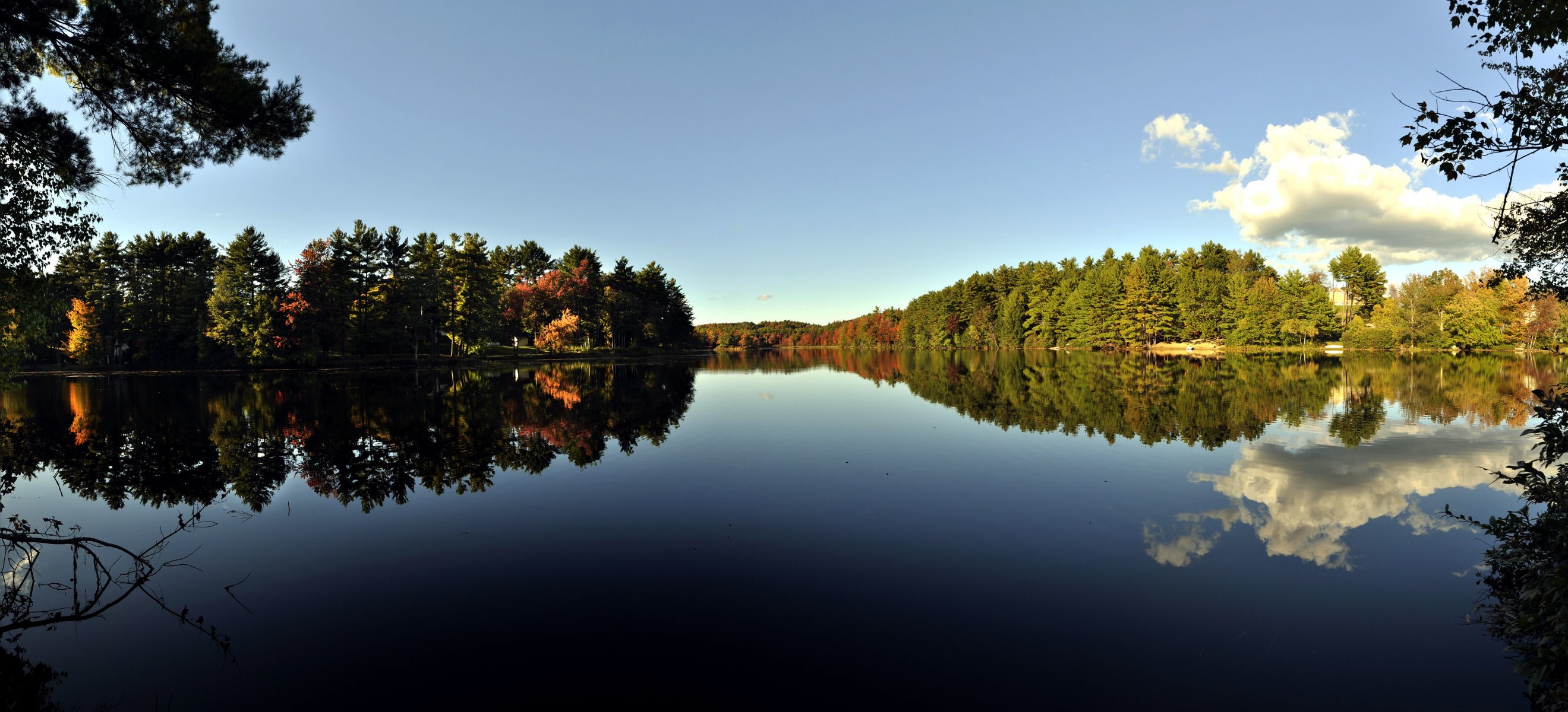 Rzeka szeroka brzegi z drzewami