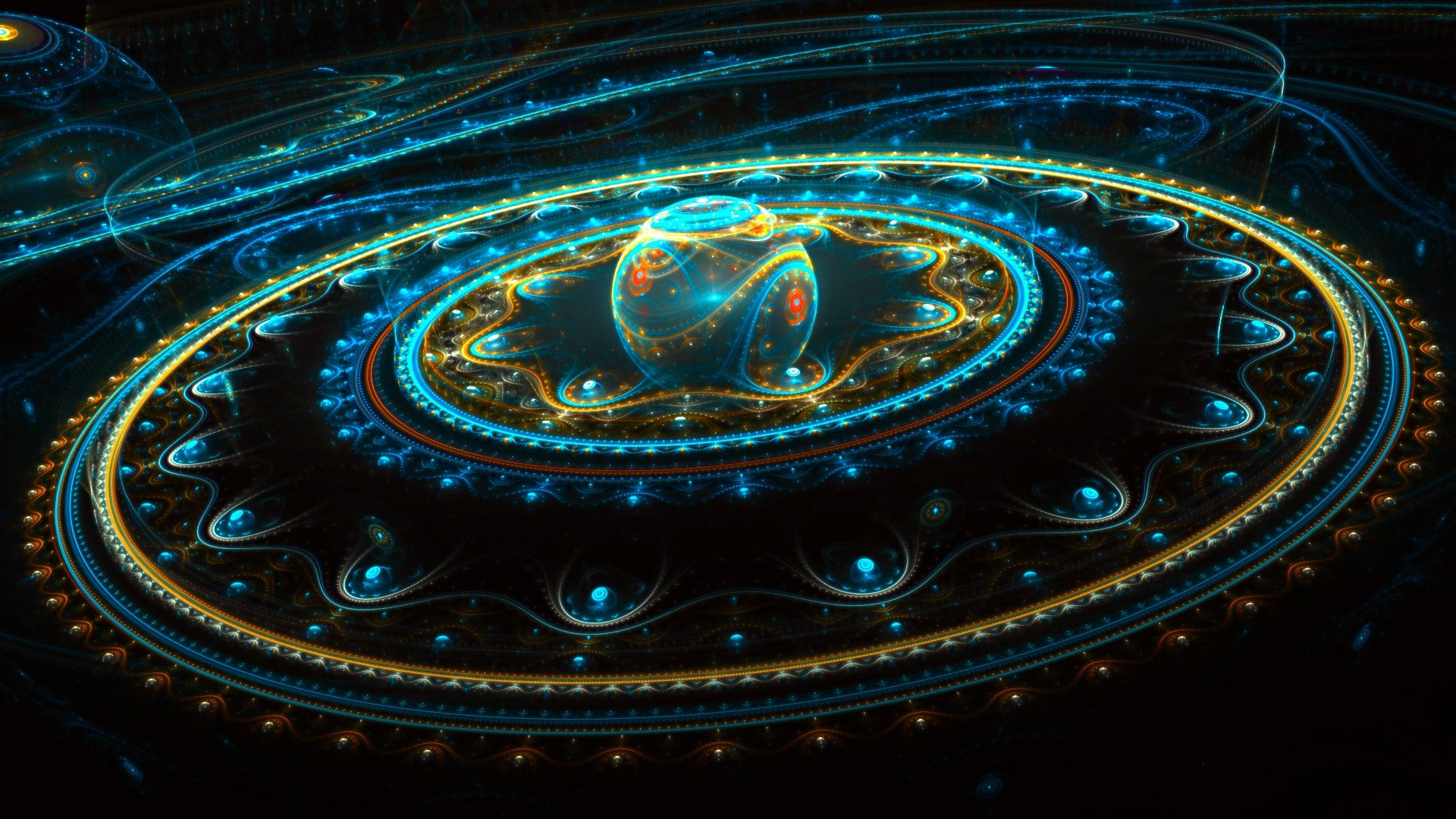 Sztuka abstrakcyjna. Kula i pierścienie na czarnym tle