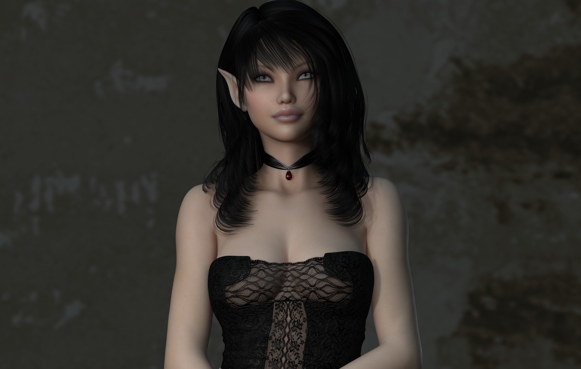 Dziewczyna elfka z wisiorkiem na czarnym tle