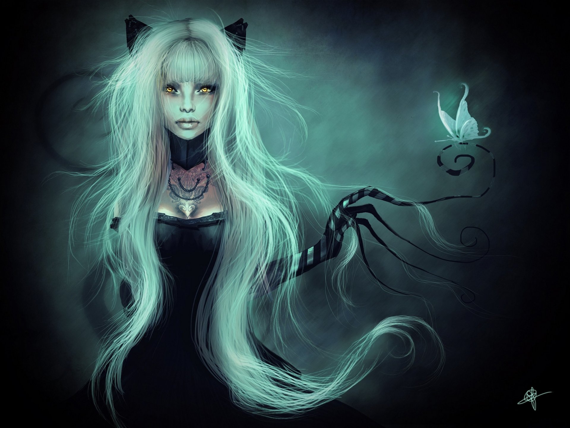 Szary kot w pobliżu źdźbła trawy spoczywa w górę wąsami, ale oczy podążają za tobą