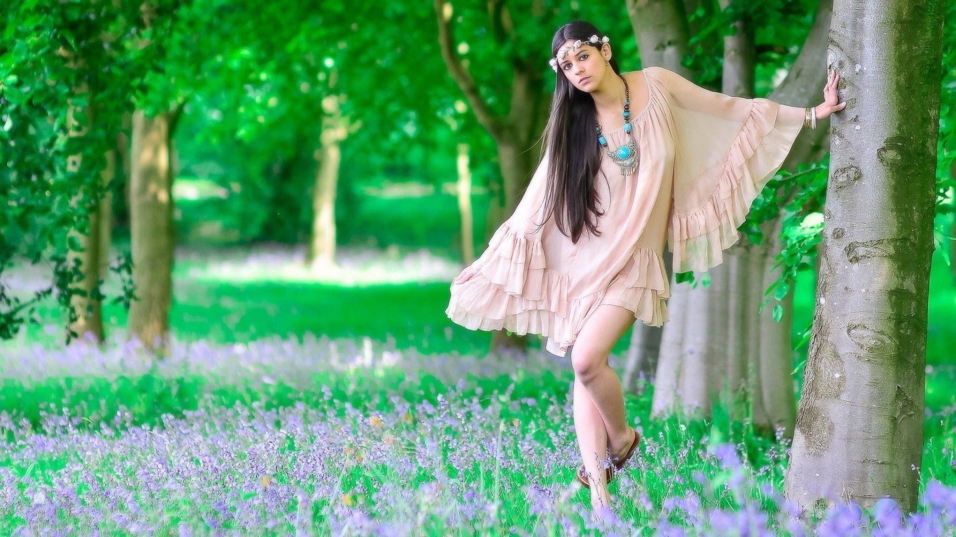 Dziewczyna brunetka w pobliżu czerwonych maków