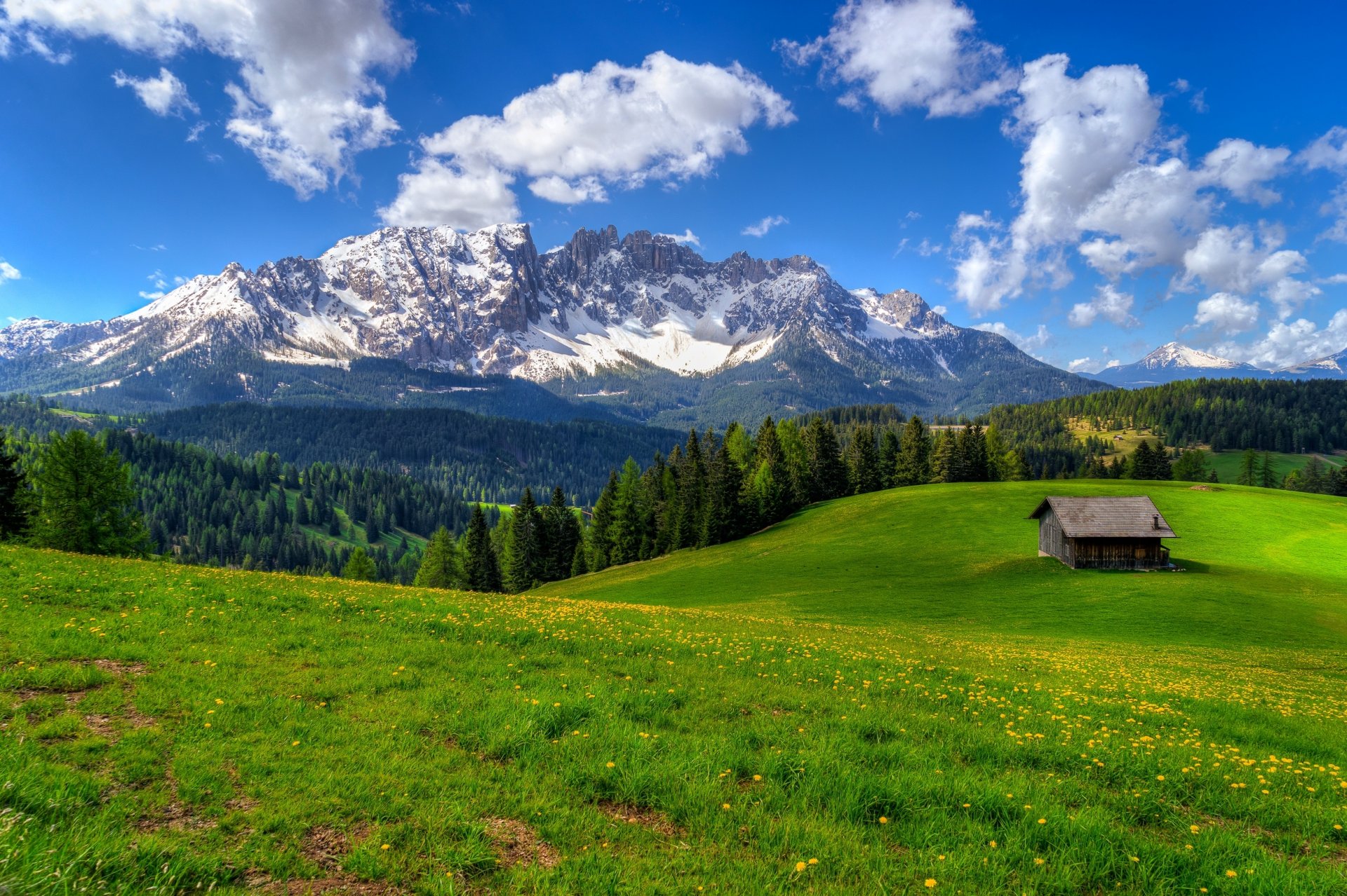 Piękny widok we Włoszech pola drzewa DOM słońce