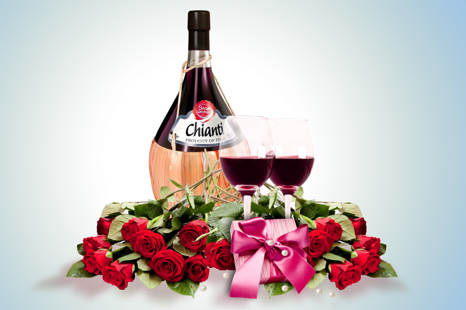 Czerwone róże i Vinos dla dwojga