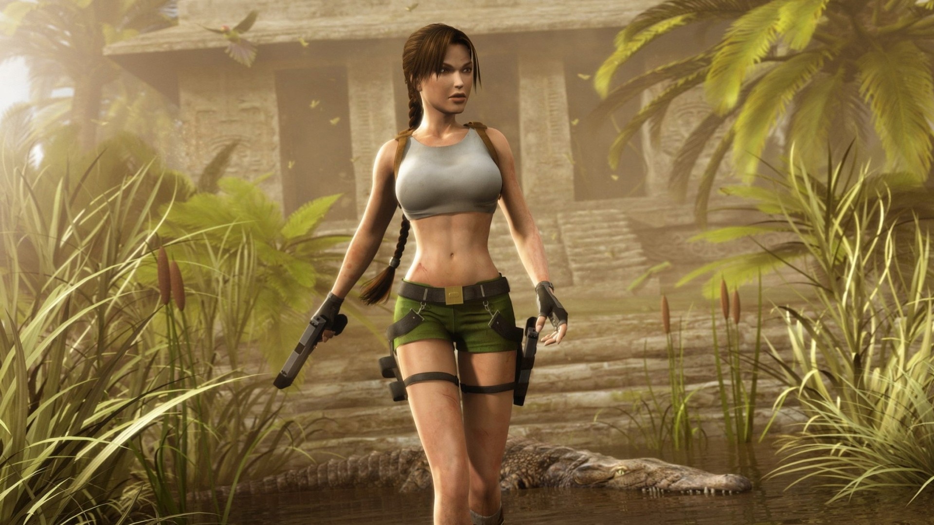 Dziewczyna w koszulce i nakryciu głowy zakonnicy, z pistoletem