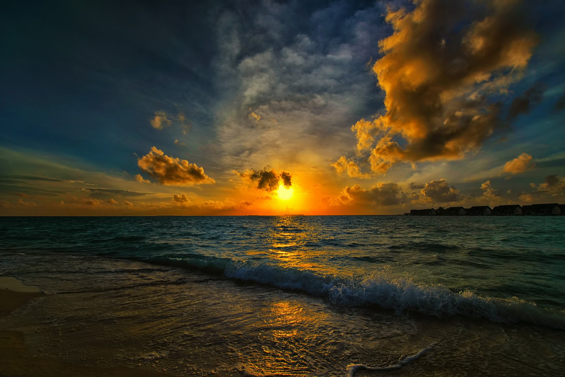 Wybrzeże zatoki z malowniczymi kamieniami na tle zachodu Słońca