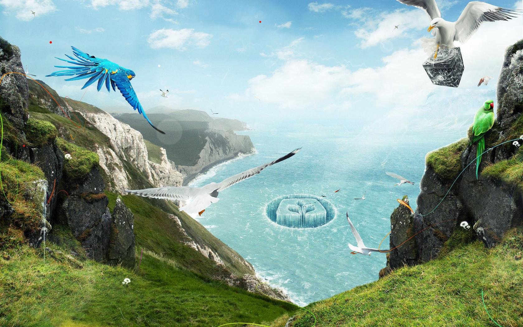Wzniesienie górskie z różnymi ptakami