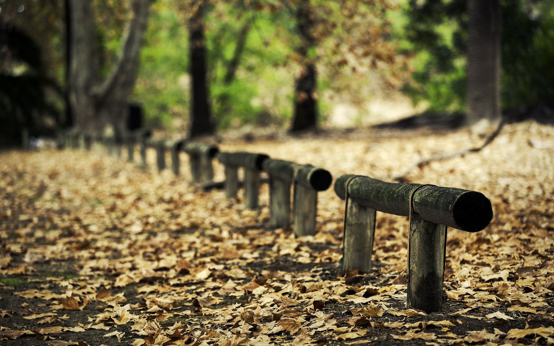 Aleja w jesiennym lesie ogrodzona