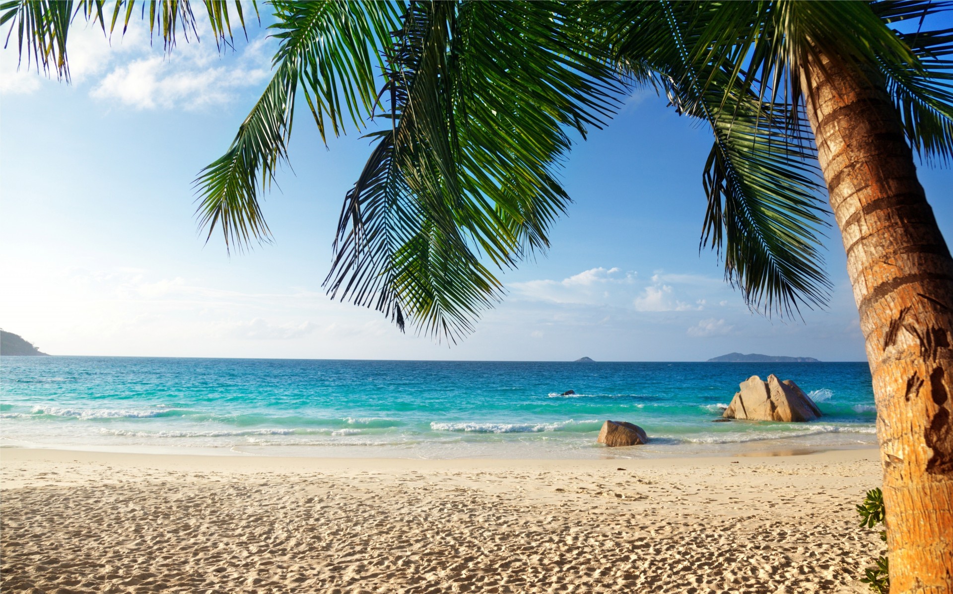 Letnia piaszczysta plaża i miejsce pod Palma