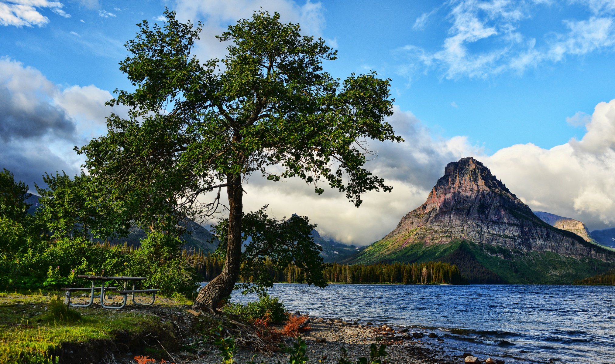 Kolorowy krajobraz drzewa nad jeziorem górskim