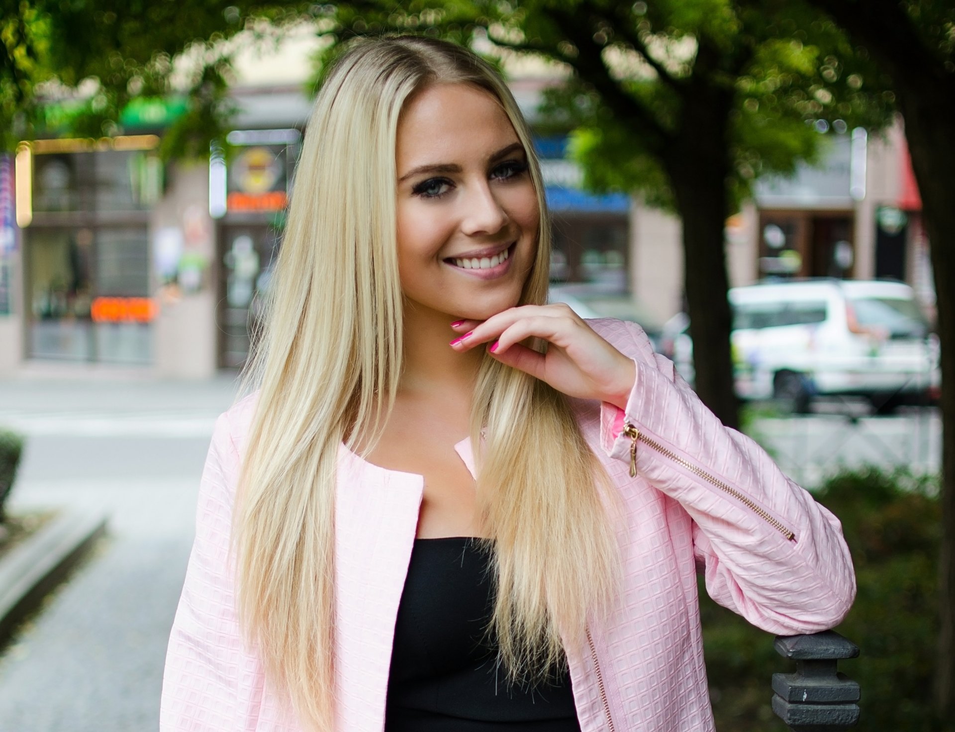 Blondynka na miejskim tle