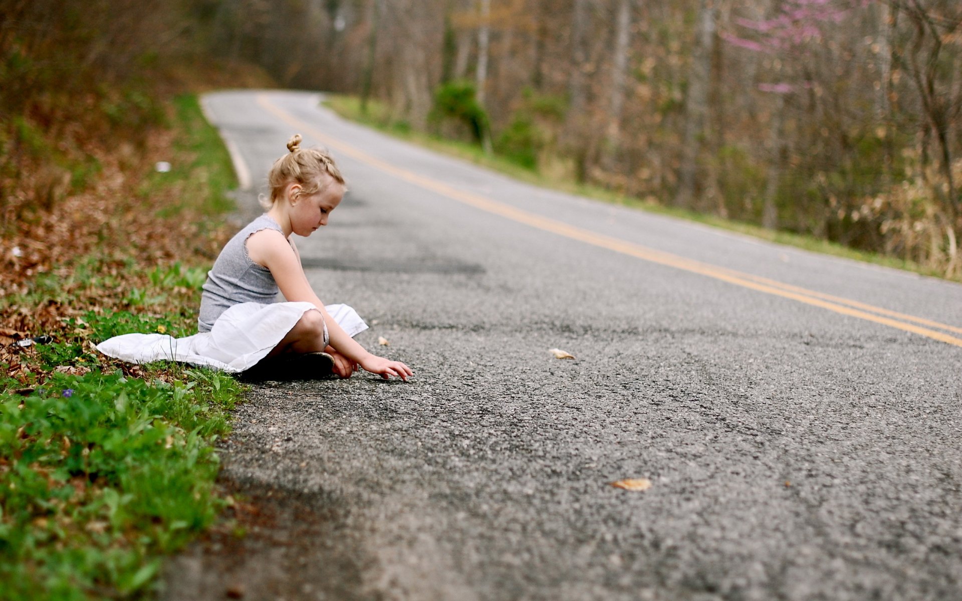 Dziewczyna siedzi na drodze