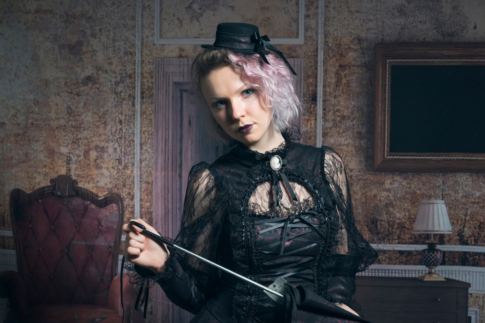 Dziewczyna w kapeluszu z niesamowitym meikiem