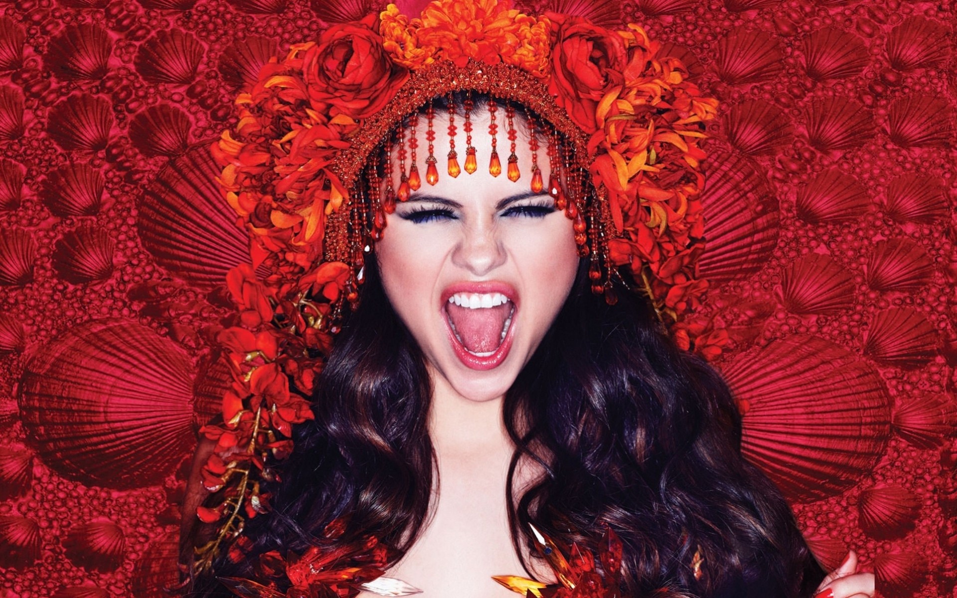 Selena Gomez piosenkarka i aktorka śpiewa w czerwonym kokoshniku