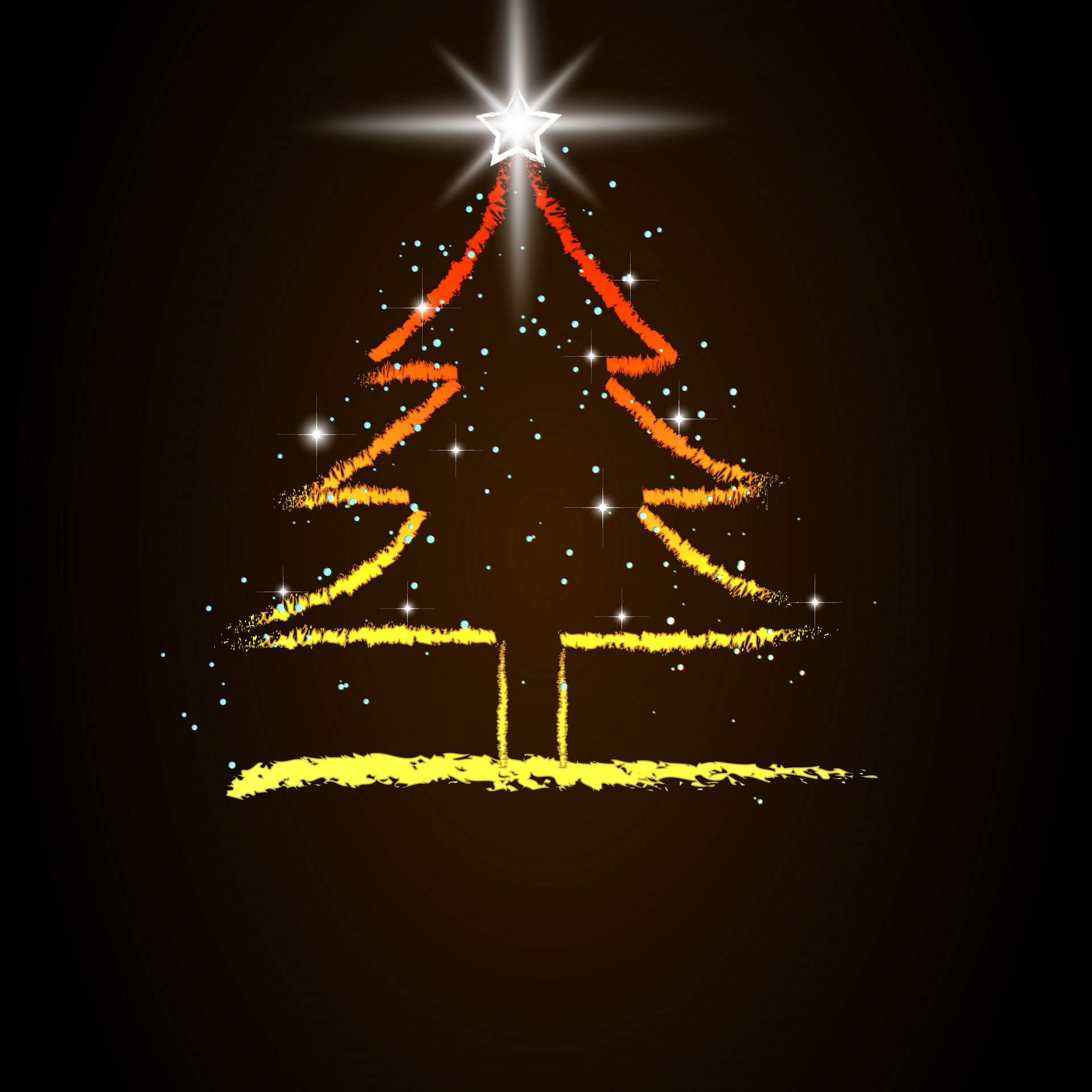 Samotna choinka w śniegu ozdobiona kulkami i gwiazdą