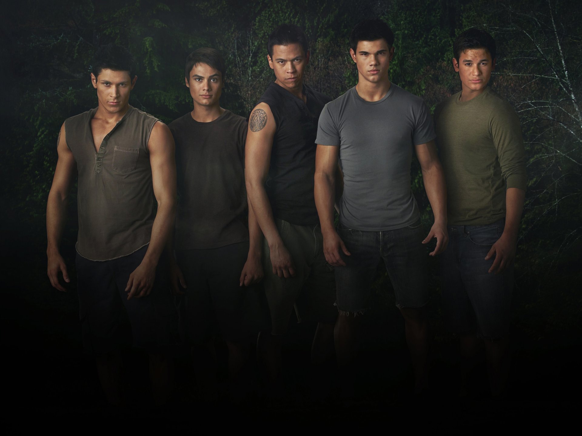Wilkołaki z filmu "Zmierzch" na tle drzew