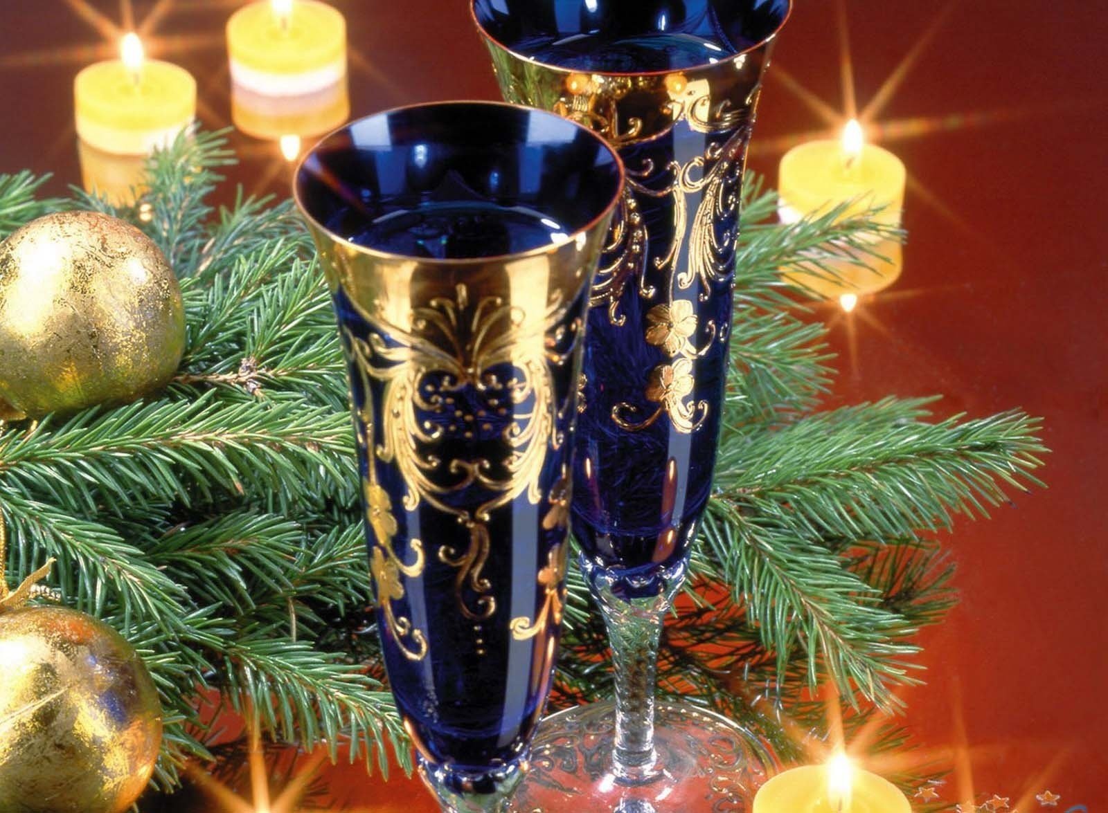 Tapeta noworoczna z choinką, srebrnymi kulkami i złotym płatkiem śnieguTapeta noworoczna z choinką, srebrnymi kulkami i złotym płatkiem śniegu