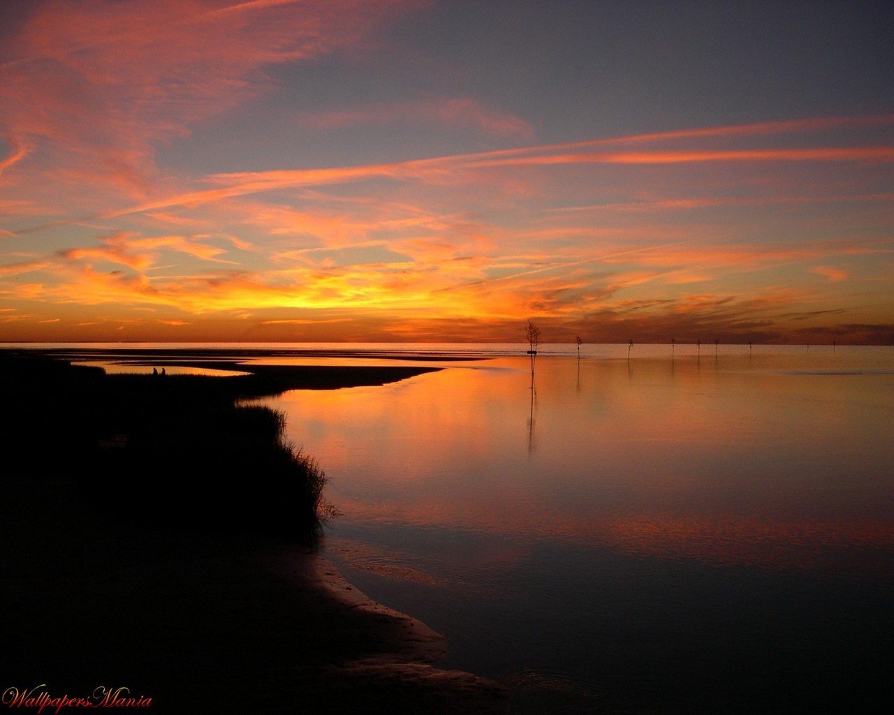 Zachód słońca przed zapadnięciem nocy nad jeziorem