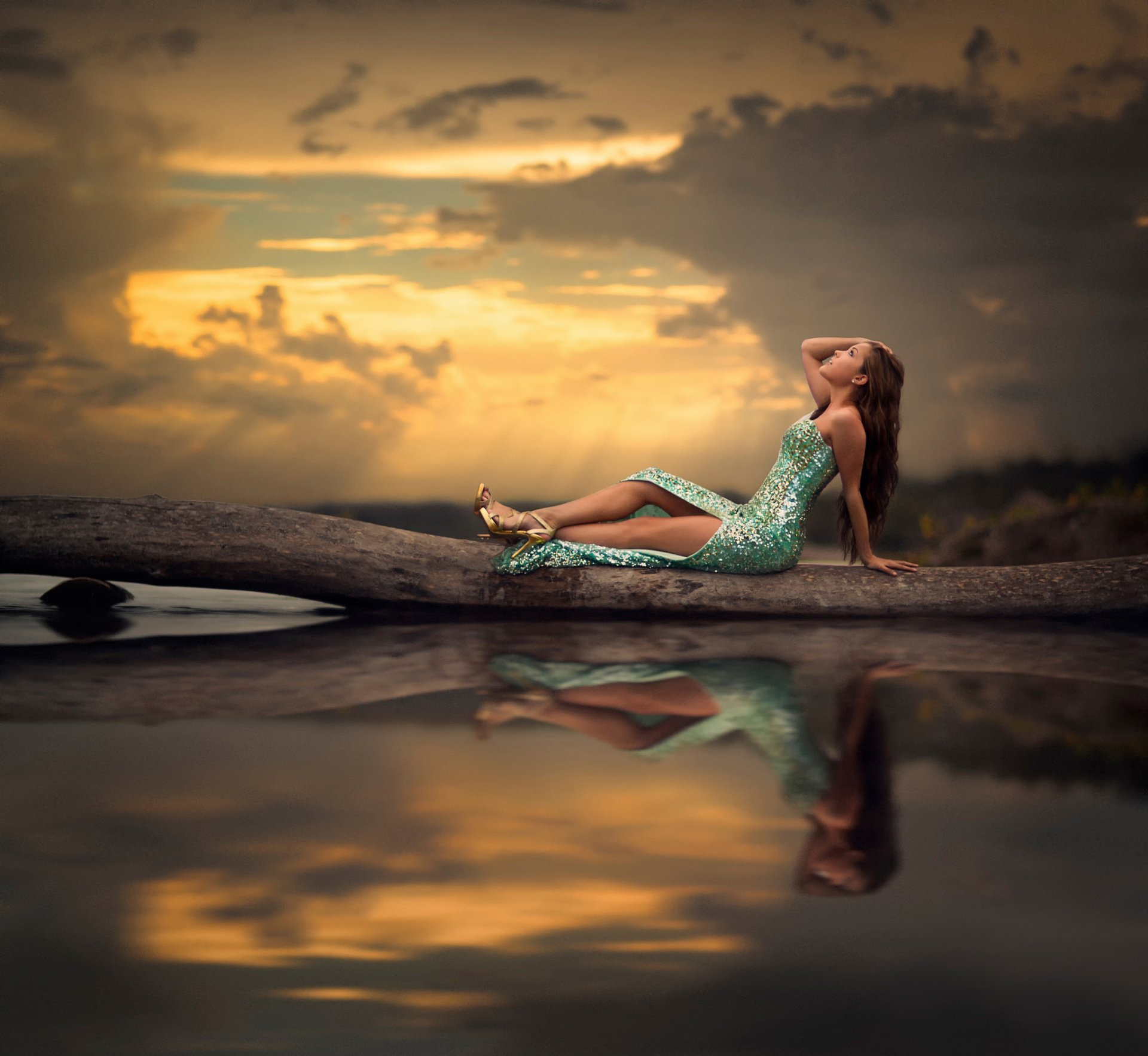 Sztuka na folii z odbiciem smoka, góry, jachty jezioroSztuka na folii z odbiciem Smoka, góry, jachty jezioro