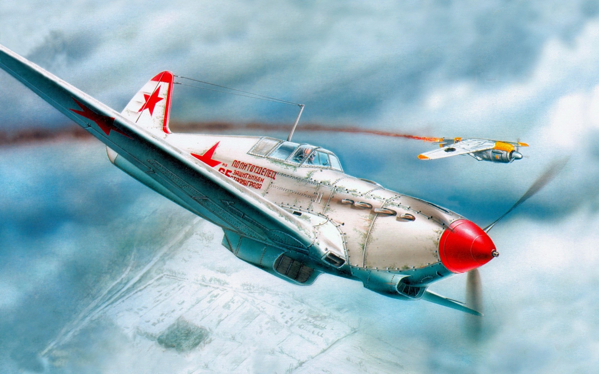 Rysunek radzieckiego samolotu podczas Wielkiej Wojny Ojczyźnianej