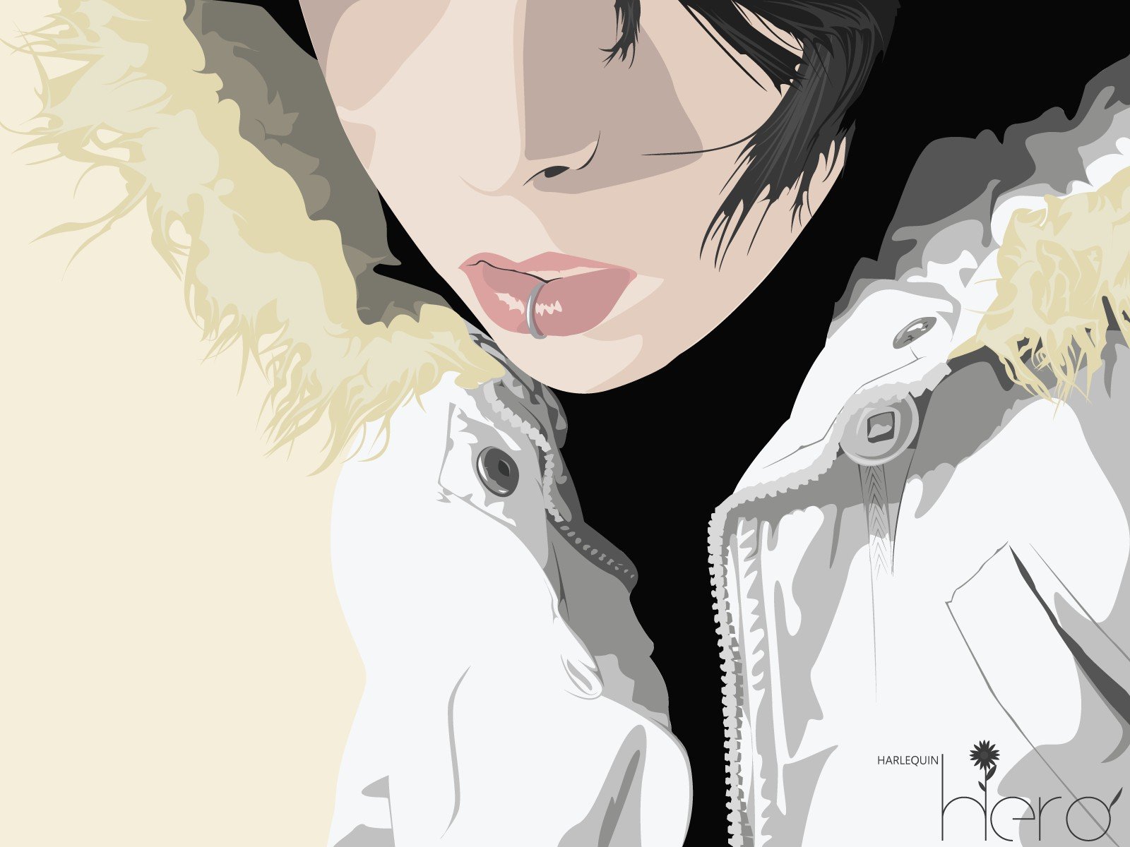 Anime rysunek dziewczyny w białej kurtce