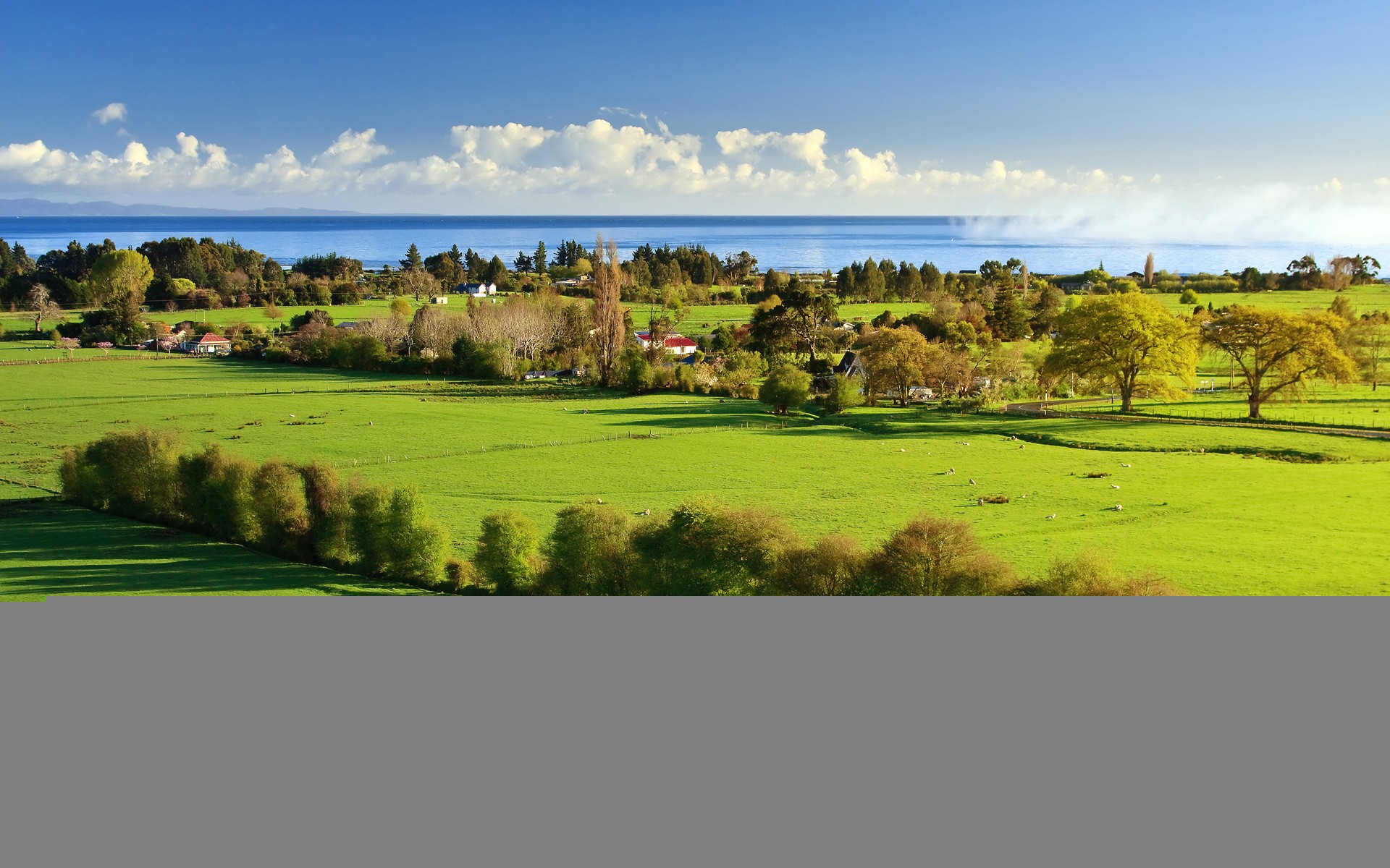 Błękitne morze z widokiem na zieloną trawę z pięknymi drzewamiBłękitne morze z widokiem na zieloną trawę z pięknymi drzewami