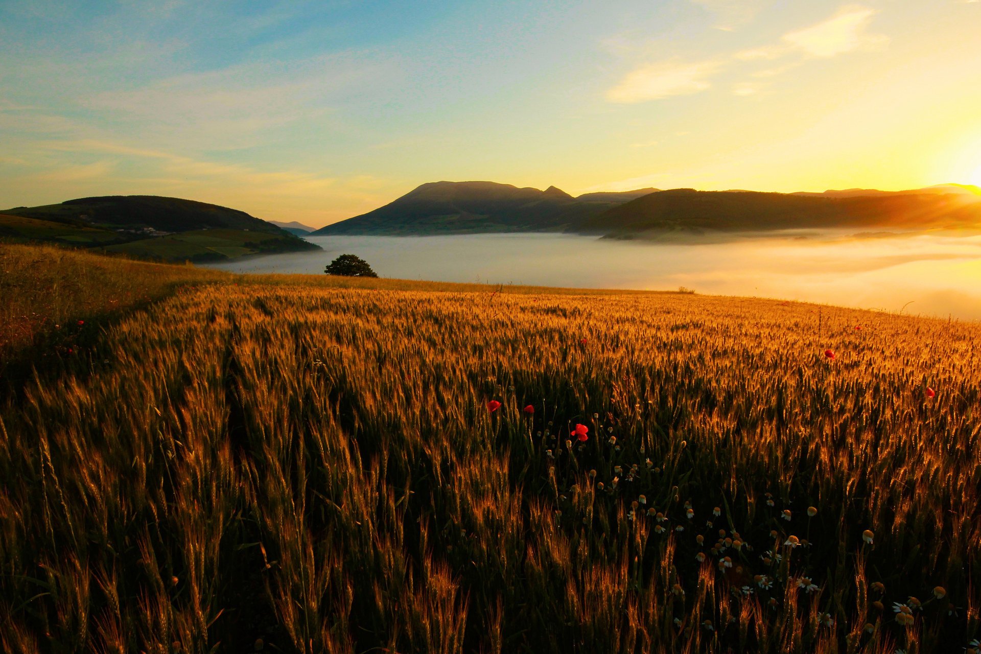 Obraz dwóch dziewcząt w kapeluszach na polu na tle zachmurzonego niebaObraz dwóch dziewcząt w kapeluszach na polu na tle zachmurzonego nieba