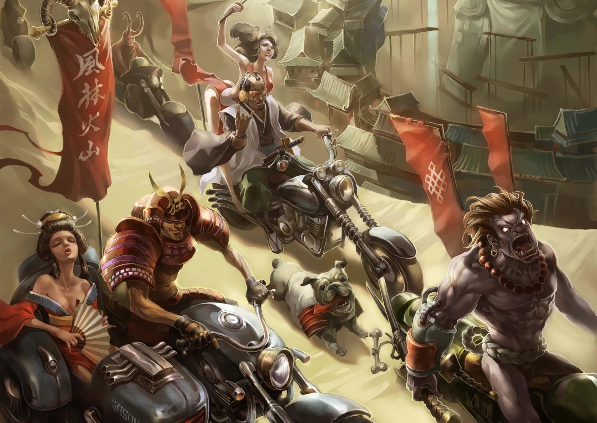 Podwodny świat z syrenami trzymającymi w ręku włócznię otoczoną potworamiPodwodny świat z syrenami trzymającymi w ręku włócznię otoczoną potworami