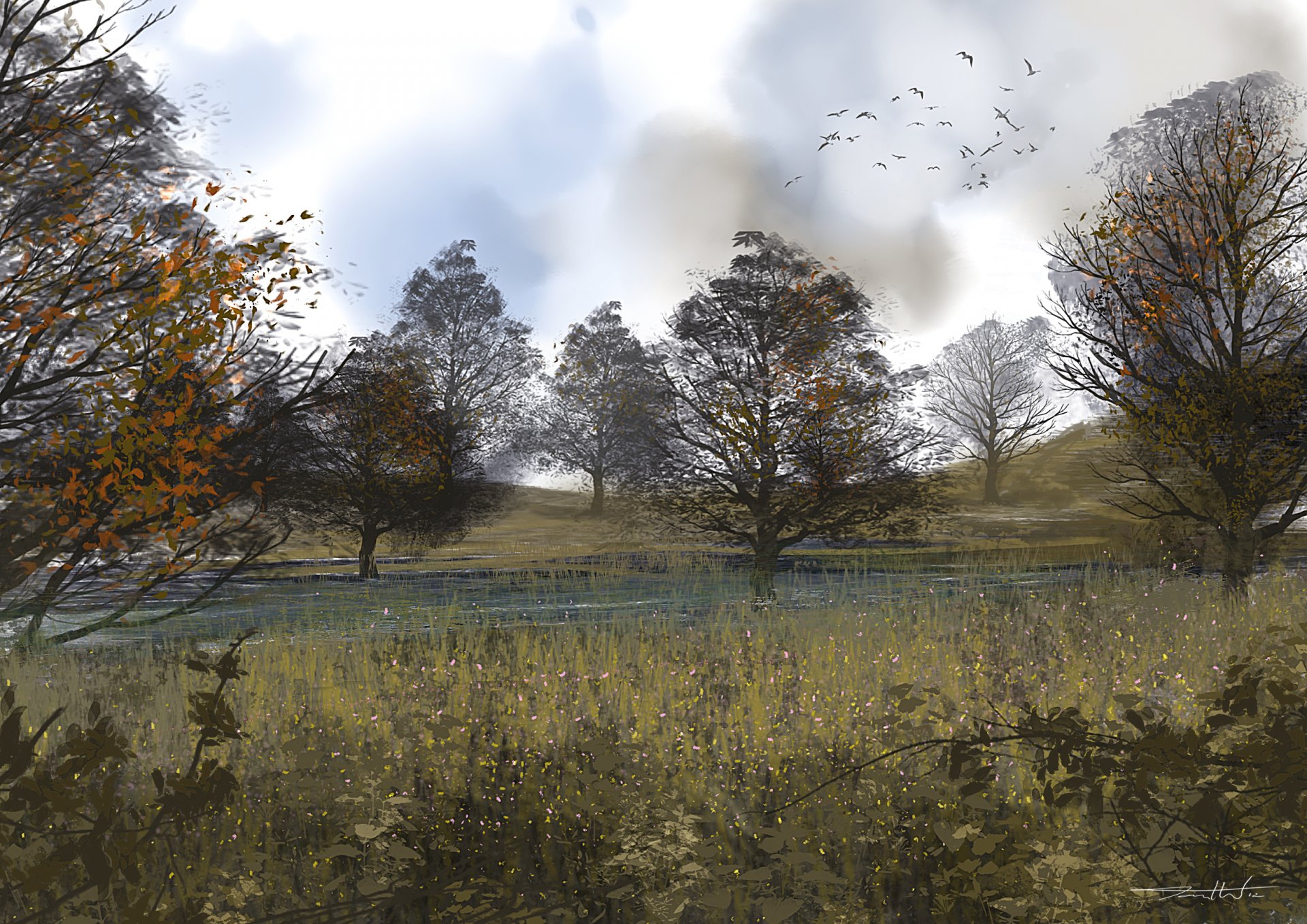 Jesienny krajobraz. Ptaki na jesiennym niebie