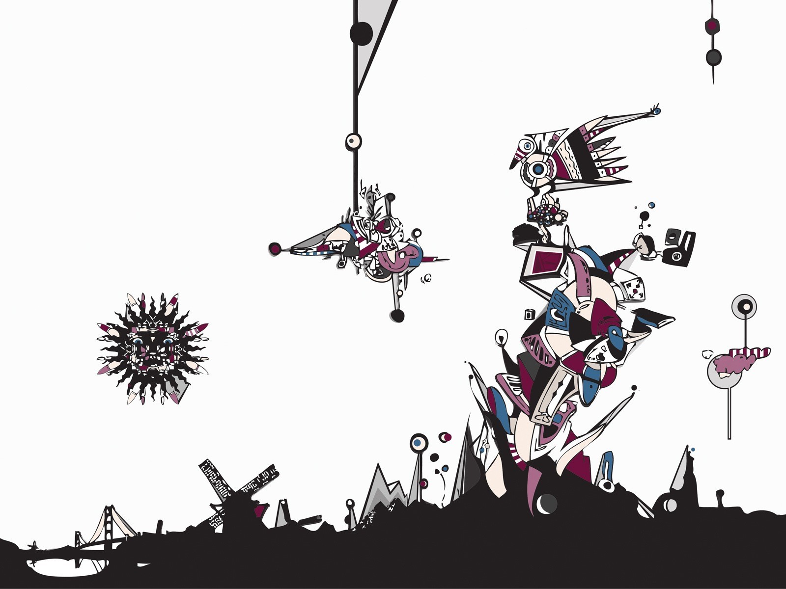 Abstrakcyjne rysunki w ciemnym kolorze na białym tle