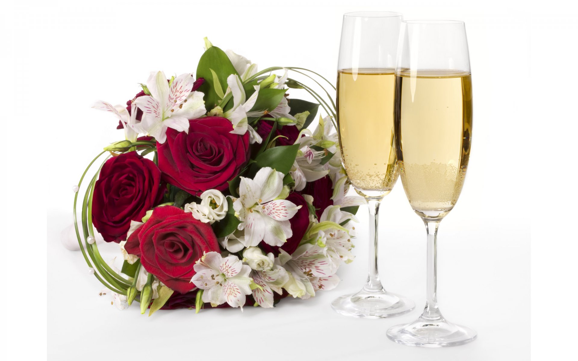 Święto Nowego Roku, wstążka, bombki, gałązka świerka i kieliszki