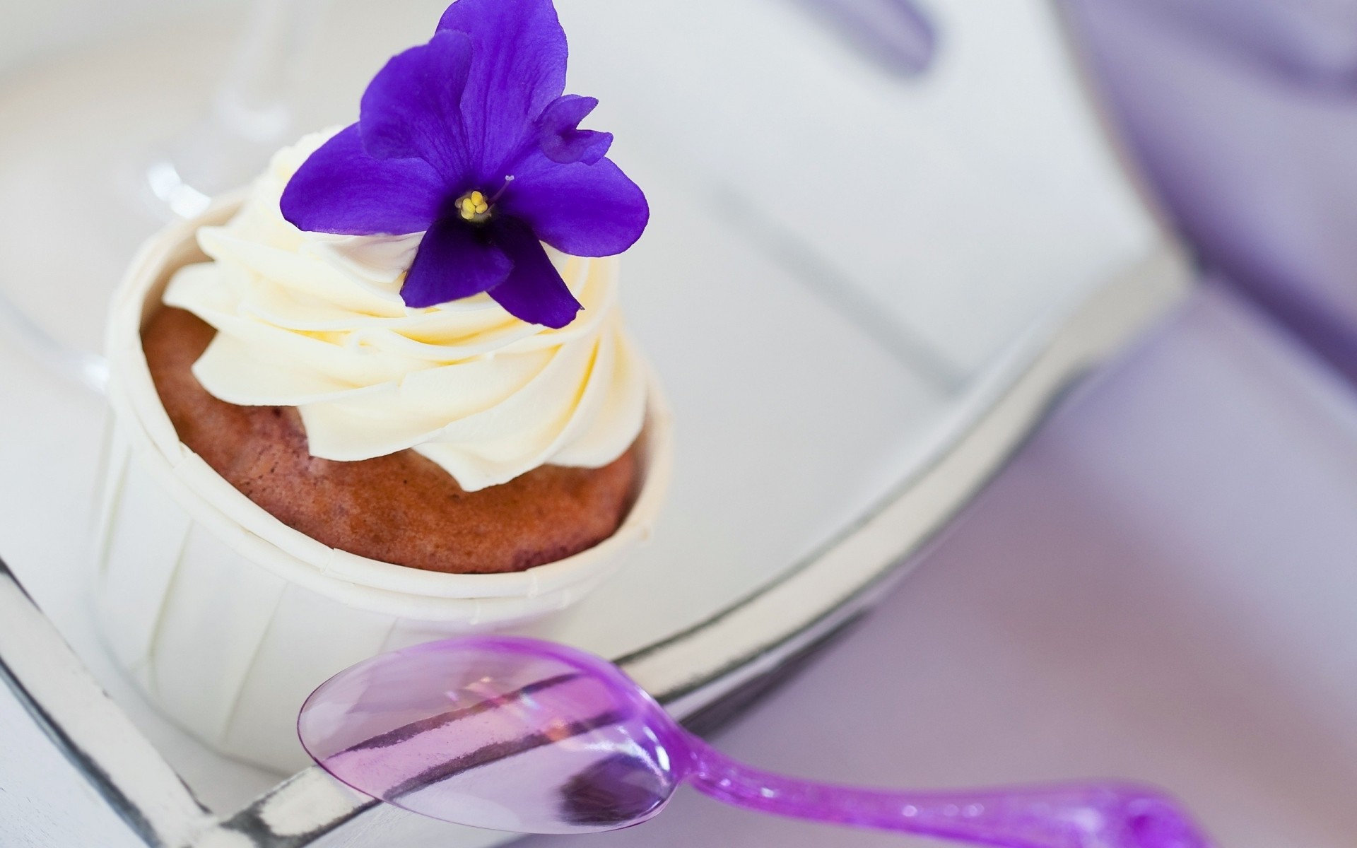 Babeczki na tacy i świeca na stole