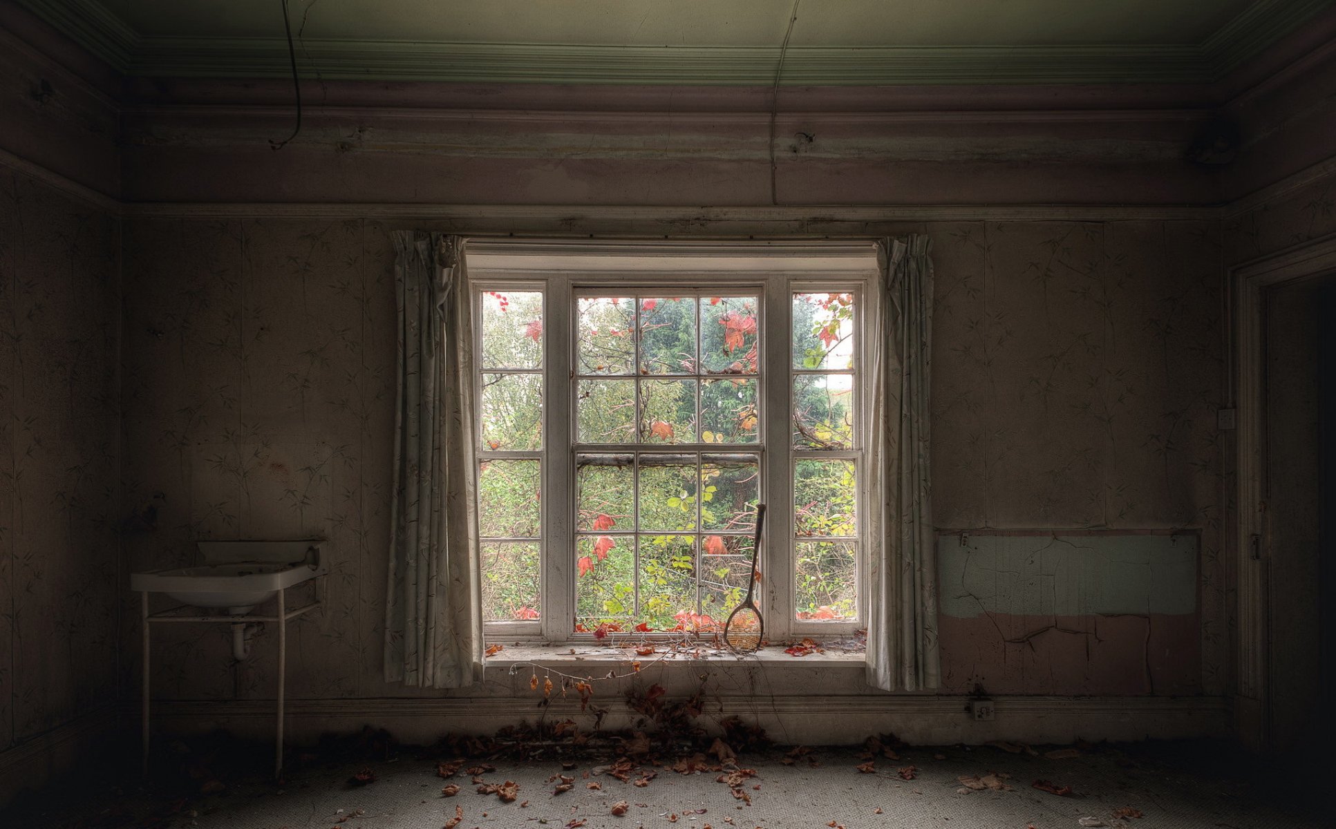 Dziewczyna w pokoju, piękna sukienka. W pokoju duże okno